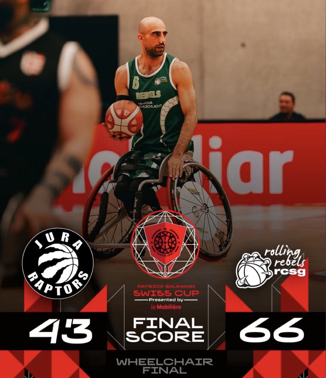 Notre équipe de handibasket des Jura Raptors s’est inclinée avec les honneurs en finale contre les Rolling Rebels de St-Gall. Nous ramenons donc la médaille d’argent dans le Jura et félicitons les Rolling Rebels pour leur victoire.